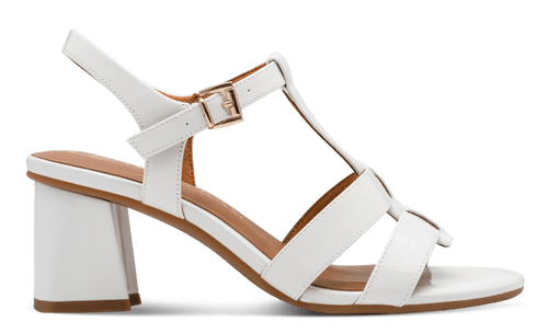 The sleek white patent finish adds a clean, sophisticated touch, enhancing the sandal’s refined silhouette and making it easy to pair with summer dresses, tailored trousers, skirts, or occasion wear. Designed with Marco Tozzi’s signature attention to detail, this sandal delivers durability, comfort, and a flattering fit season after season.