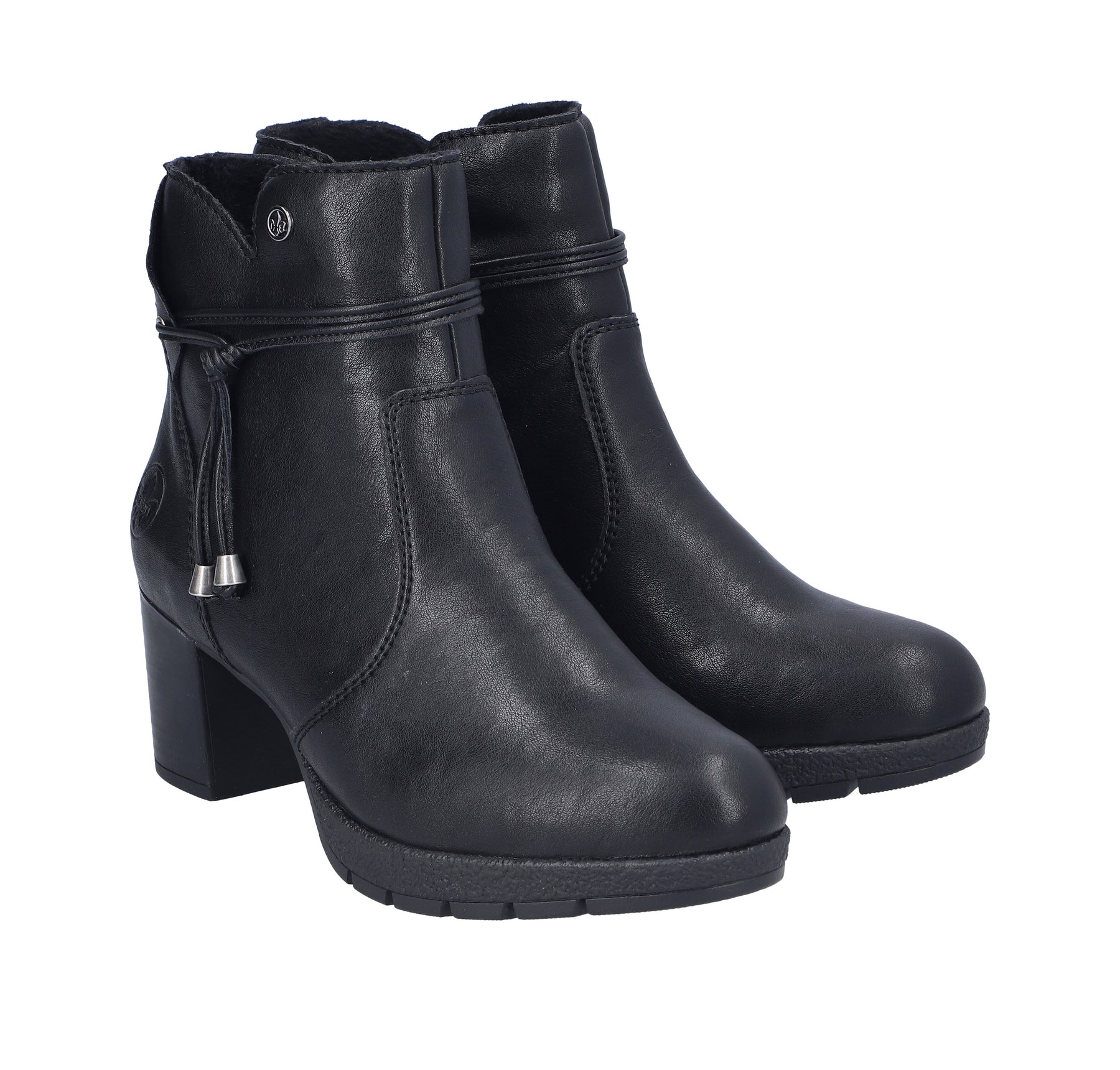• The Rieker Ladies Block Heel Ankle Boot combines style and practicality with its sturdy block heel and convenient side zip for easy wear.